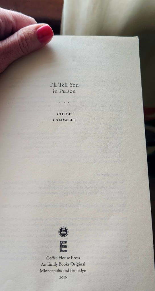 I read I’ll Tell You in Person by Chloe Caldwell right before reading her other more well-known and previous book entitled Women. The book reads as a memoir and Caldwell as the main character is unhinged and insufferable, but recognizable, and this seems intentional and is the interesting thing about this book.